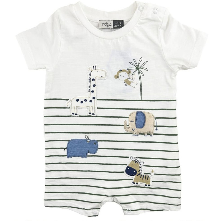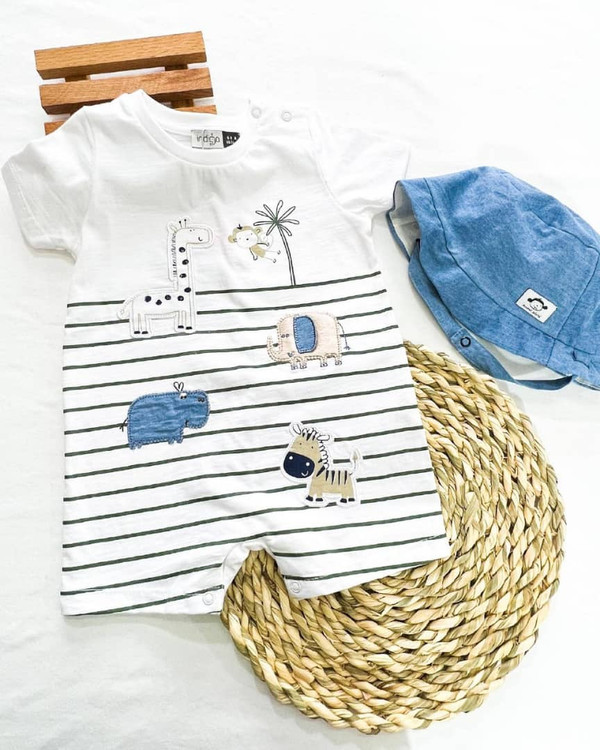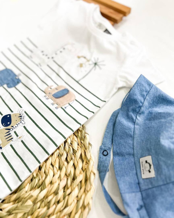 رامپر و کلاه آستین کوتاه پسرانه طرح حیوانات ایندیگو Indigo کد 196045