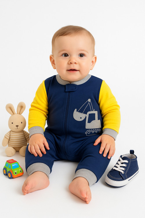 سرهمی پسرانه مدل بیل مکانیکی جنس نخ پنبه