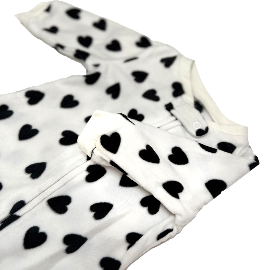 سرهمی نوزادی طرح قلب یکی از بهترین انتخابها برای والدینی است که به دنبال لباس نوزادی راحت، لطیف و باکیفیت هستند. این سرهمی با طراحی شیک قلبهای مشکی روی زمینه روشن، علاوه بر زیبایی، راحتی فوقالعادهای برای نوزاد فراهم میکند و گزینهای عالی برای استفاده روزمره و زمان خواب محسوب میشود.