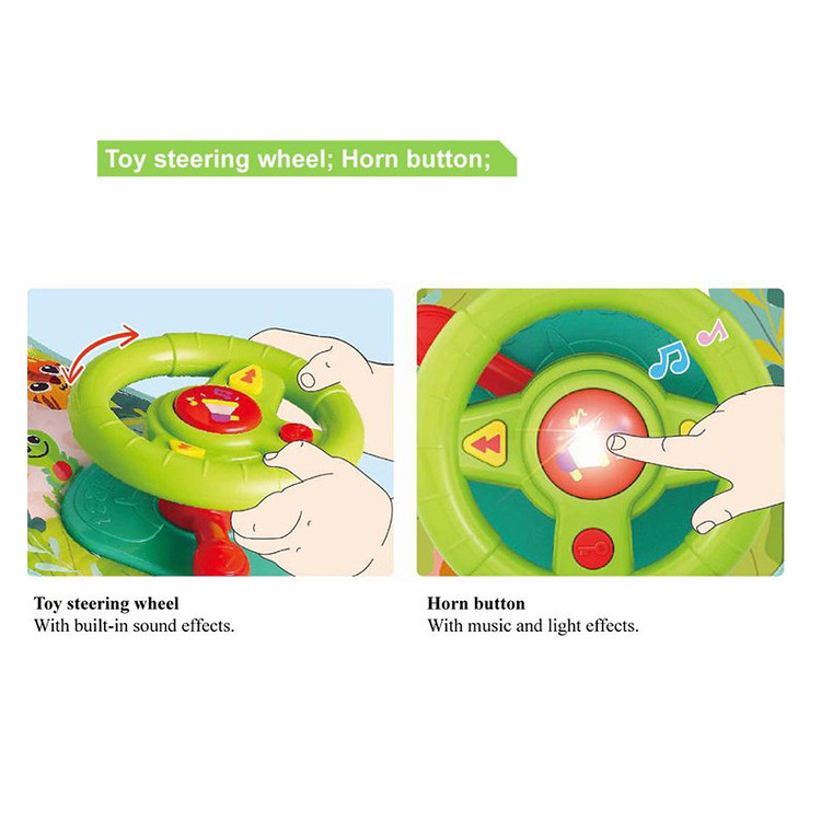 🚘یک فرمان ماشین روی صفحه که قابلیت چرخش ۳۶۰ درجه دارد همراه با تولید صدای جغجغه، اسباب بازی فرمان