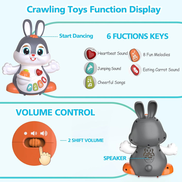 این خرگوش بامزه در حال چرخیدن چشم و دست خود را نیز تکان میدهد و چراغ داخل روشن و خاموش میشود و آواز میخواند